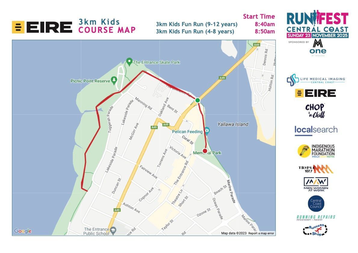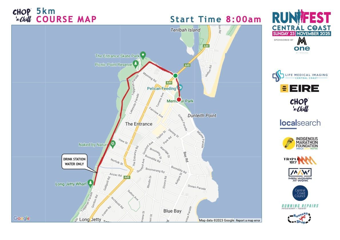 Fast, Flat and Scenic Course – The course is an out and back course. Starting under The Entrance Bridge, at The Entrance it proceeds along The Entrance Road north before linking up with the cycleway and continuing along the path for 5km. The course returns back along same route to finish at the Memorial Park, The Entrance.