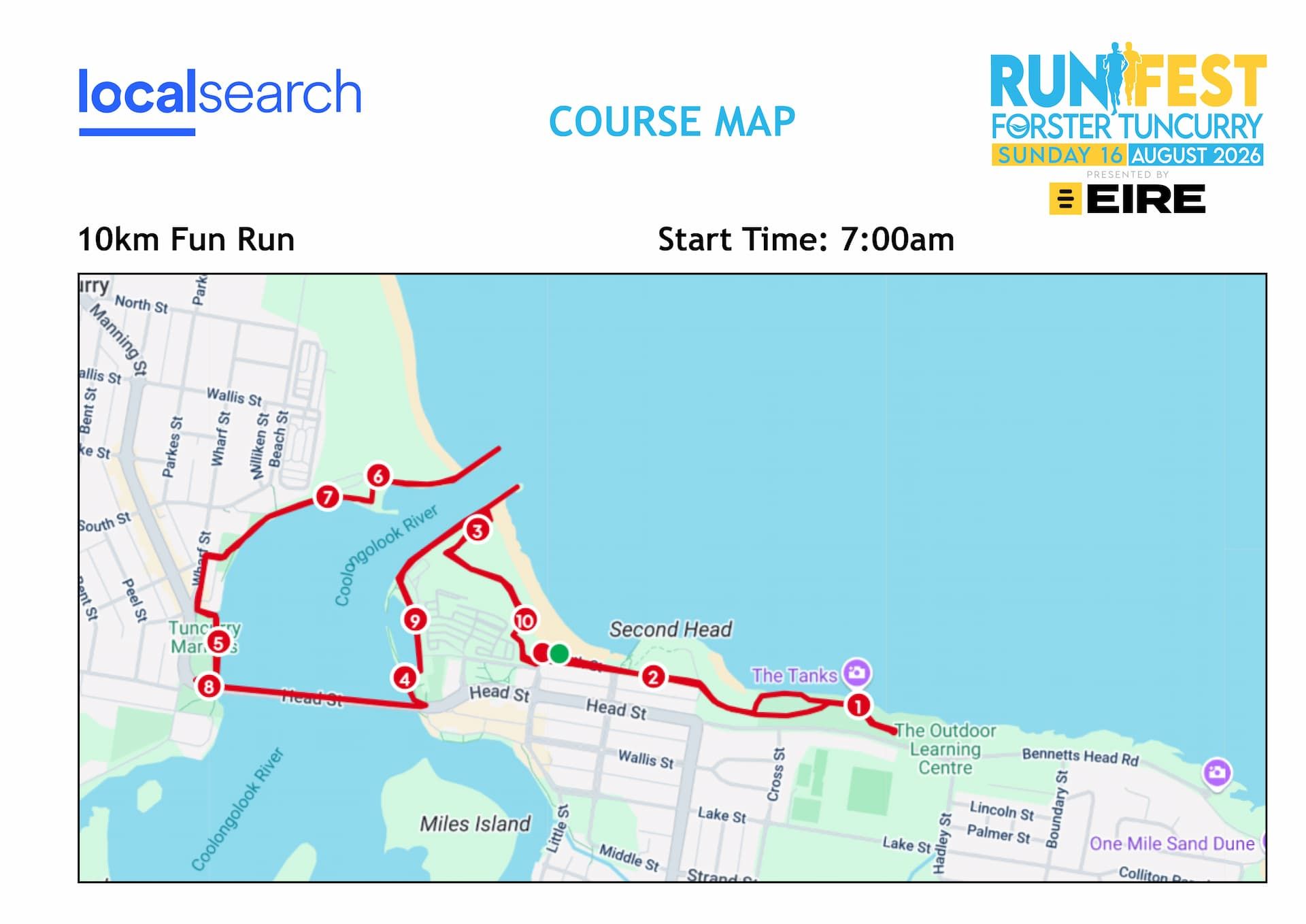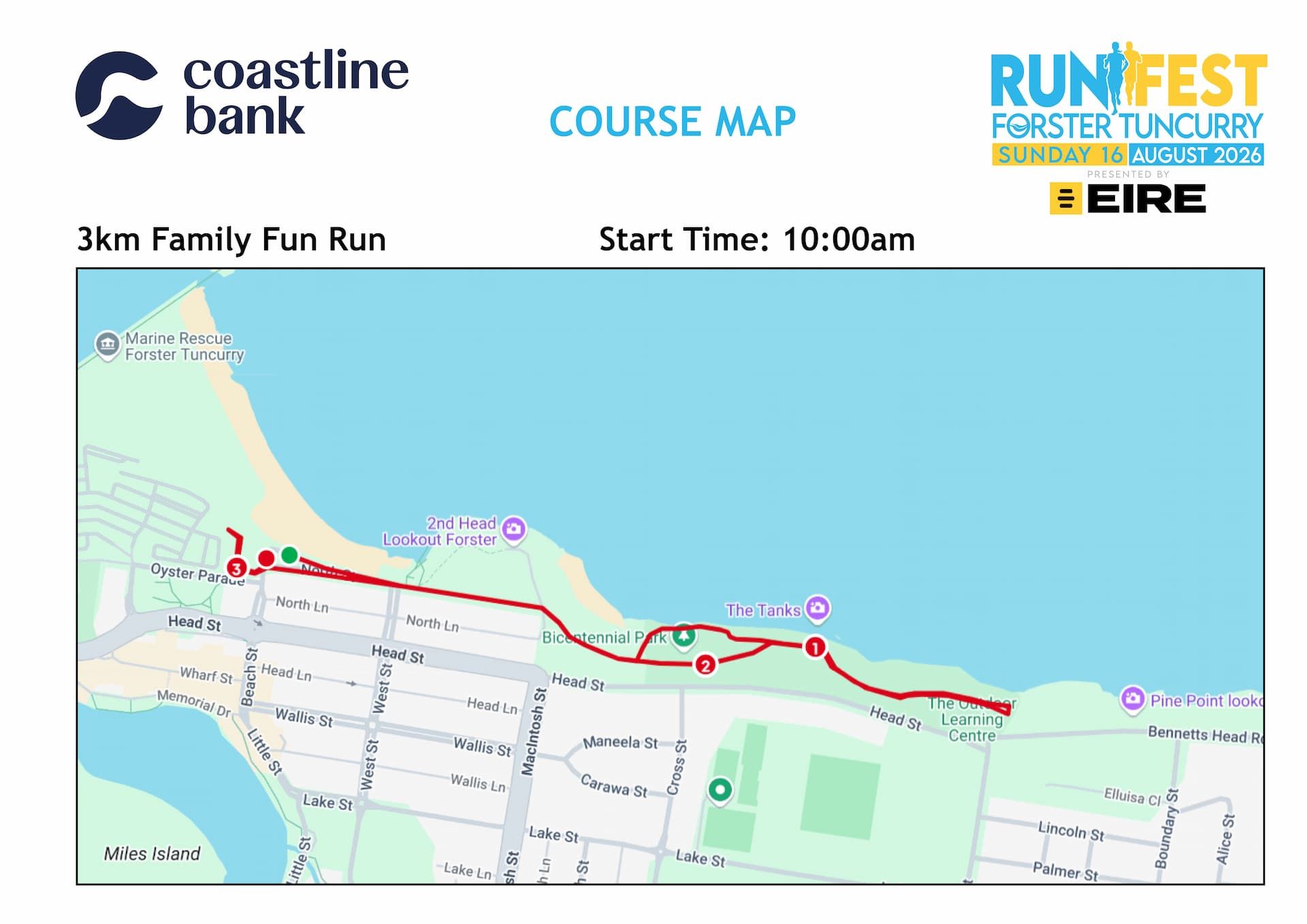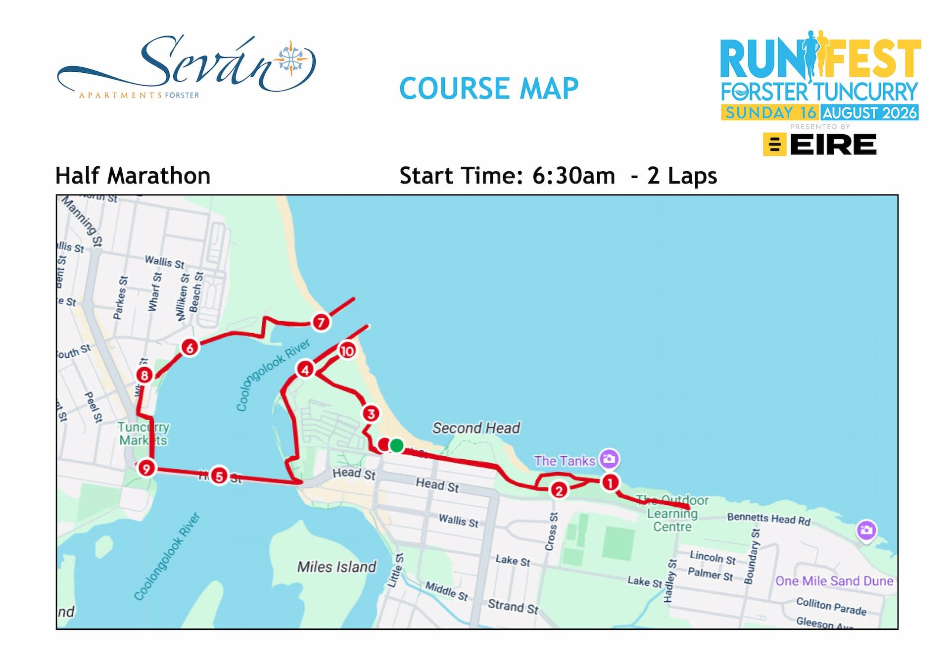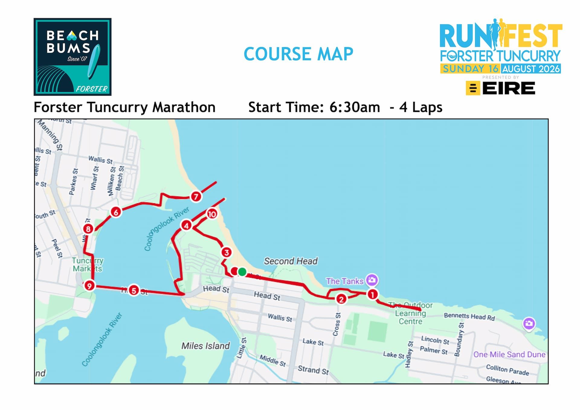 - At completion of Lap 2 make a hard left turn when exiting the Main Beach Car Park to enter the finishing shute at Forster Beach.