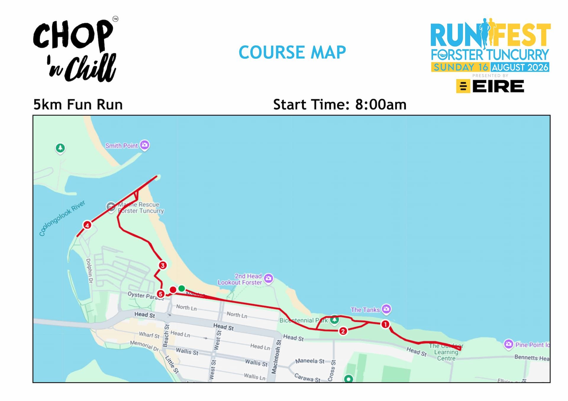- At completion of Lap 4 make a hard left turn when exiting the Main Beach Car Park to enter the finishing shute at Forster Beach.
