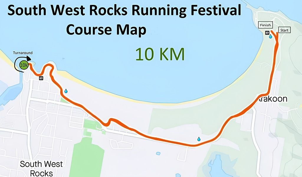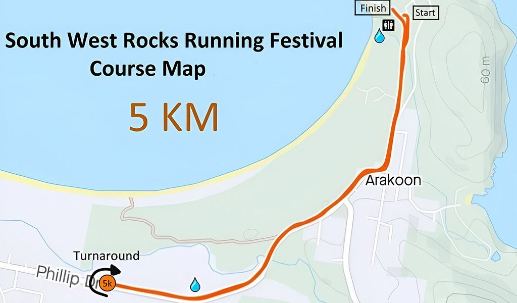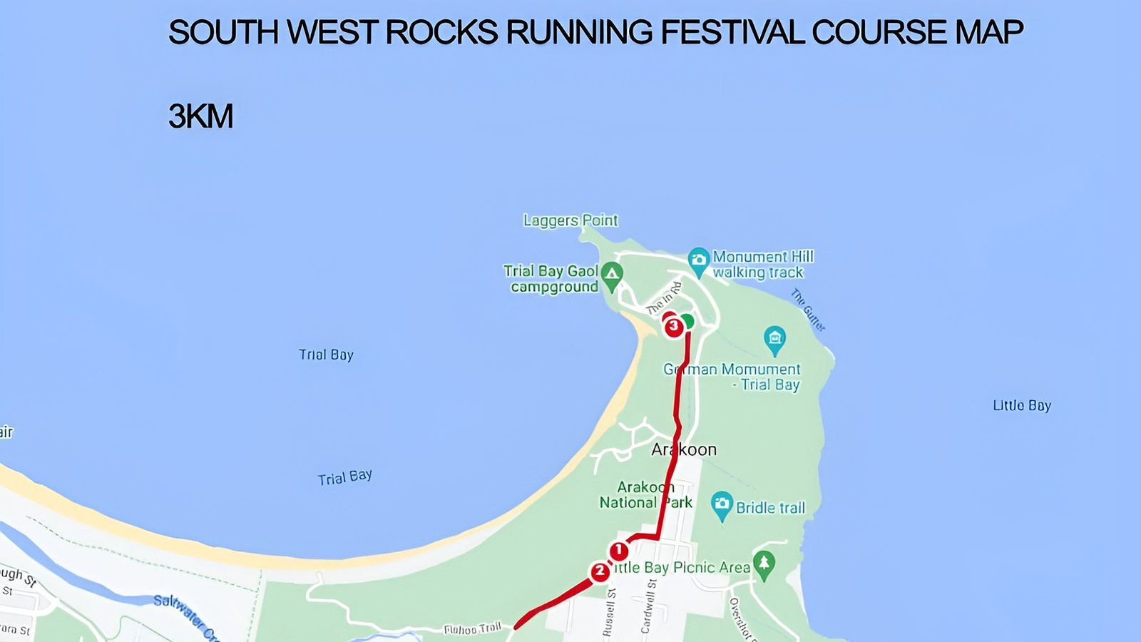 All races start at Camp Kitchen area and proceed from the start line on the right hand side of the road and run on the road till the corner of Cardwell St and Phillip Drive.